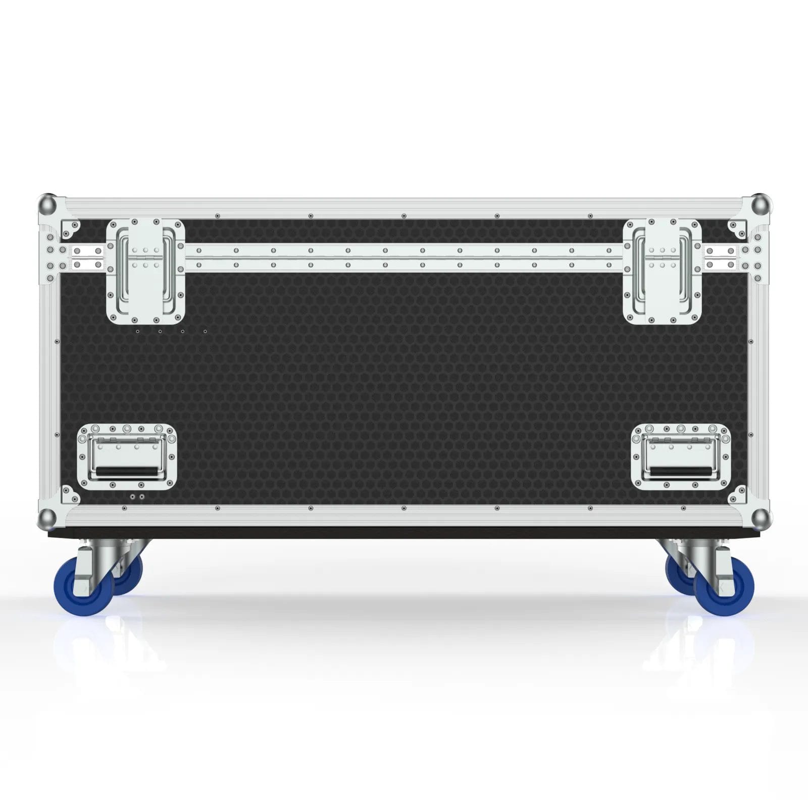 Mobility is handled by solid wheels and well‑placed recessed handles, making the case surprisingly easy to move despite the weight of four battens inside. The low‑profile design keeps the center of gravity down, which helps when rolling across uneven surfaces or up ramps. The dimensions are truck‑friendly, so it stacks neatly with other cases in a standard touring pack.