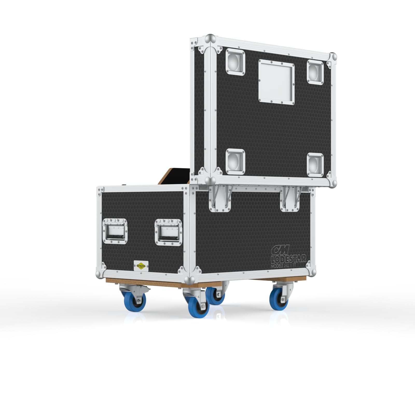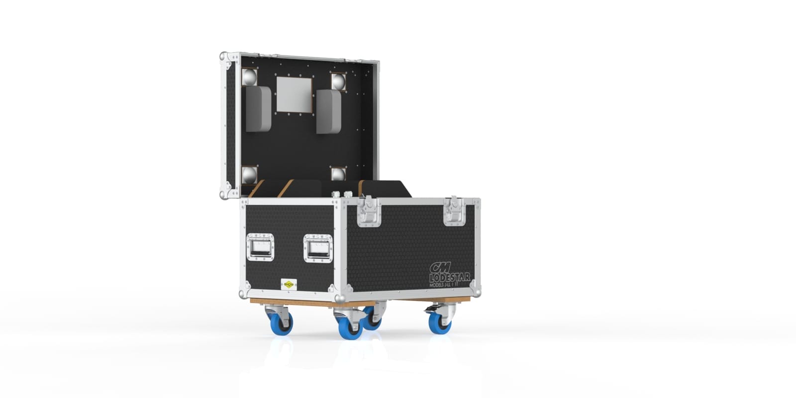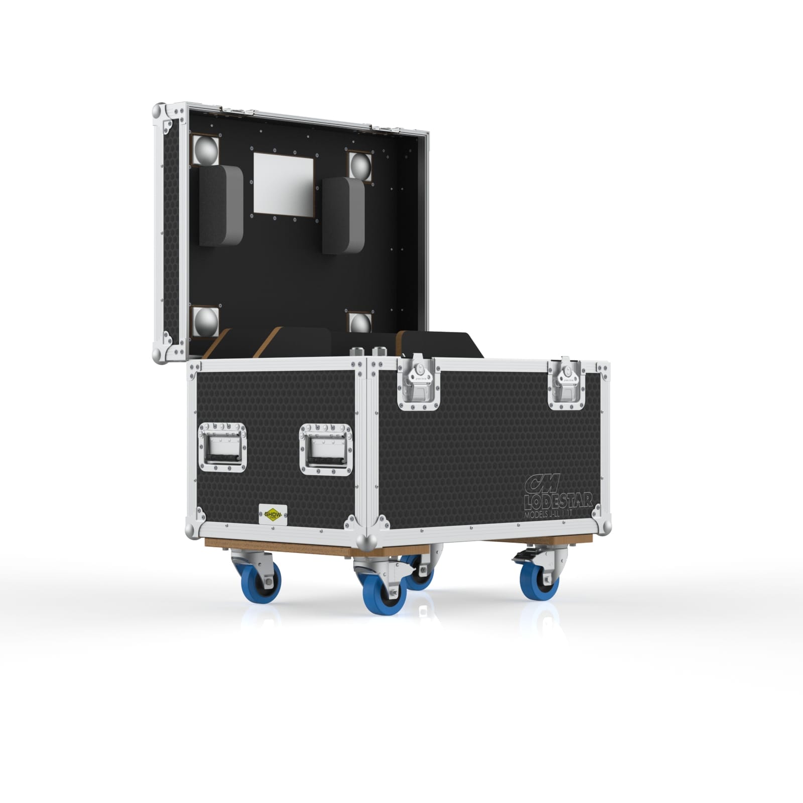 This road case is designed for a single CM Lodestar D8+ electric chain hoist, including Models J, L, JJ and LL. These hoists are powerful, heavy, and not exactly something you casually lift without help, so the case uses a hinged top lid for quick loading and unloading. Thick EVA foam at the bottom helps isolate vibration during transport, while a plywood support structure keeps the hoist stable and secure. A rear accessory compartment provides space for chains, bags, and rigging essentials. The case also features engraved CM logos on the front and back for easy identification. With solid wheels, recessed handles, and a compact footprint, it moves smoothly through warehouses, loading docks, and truck packs. It’s built for rigging teams who need a reliable, organized, and protective way to transport a single heavy hoist.