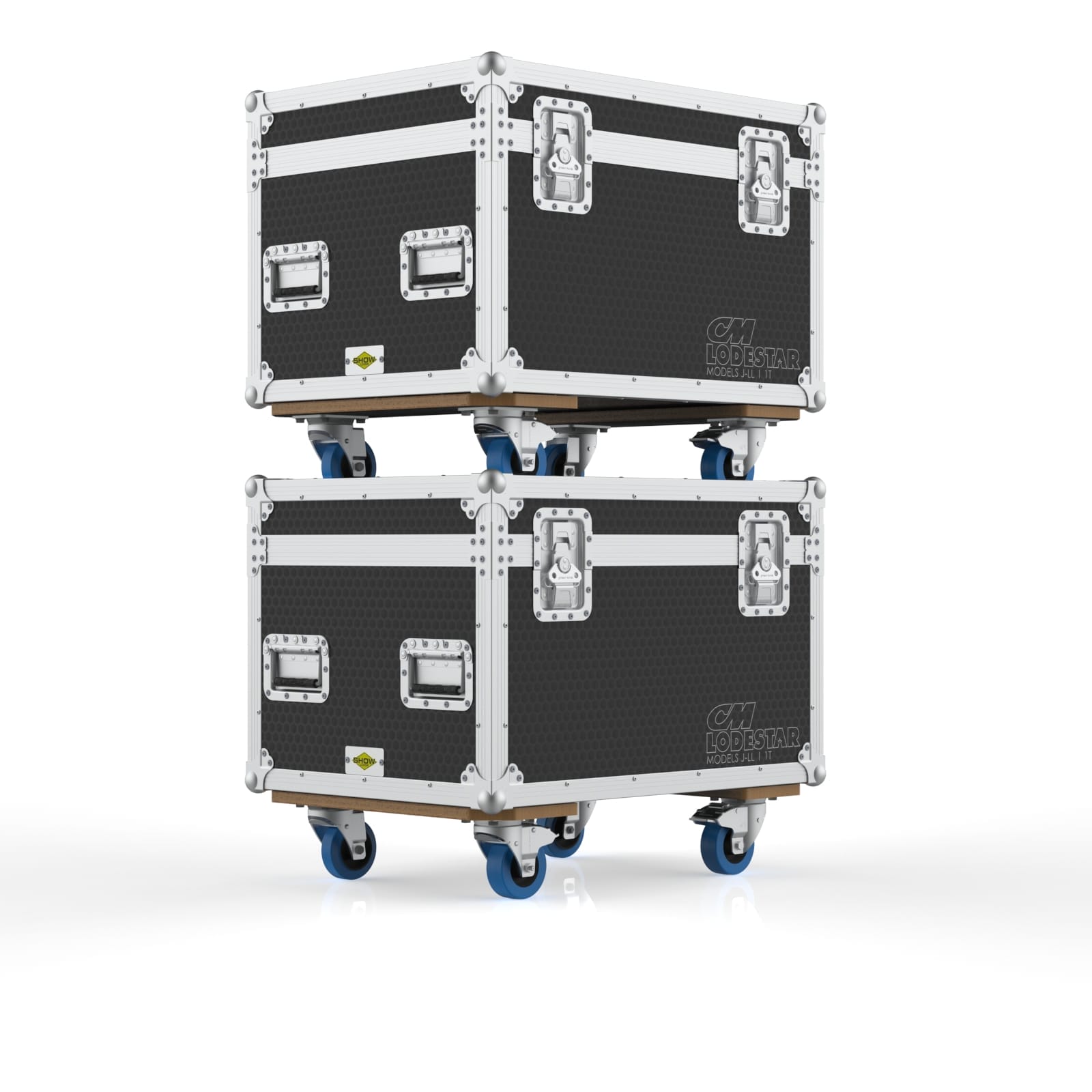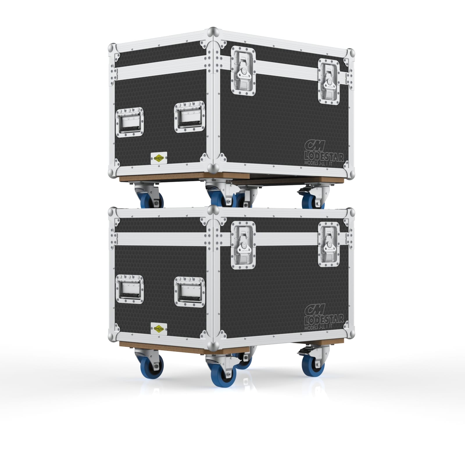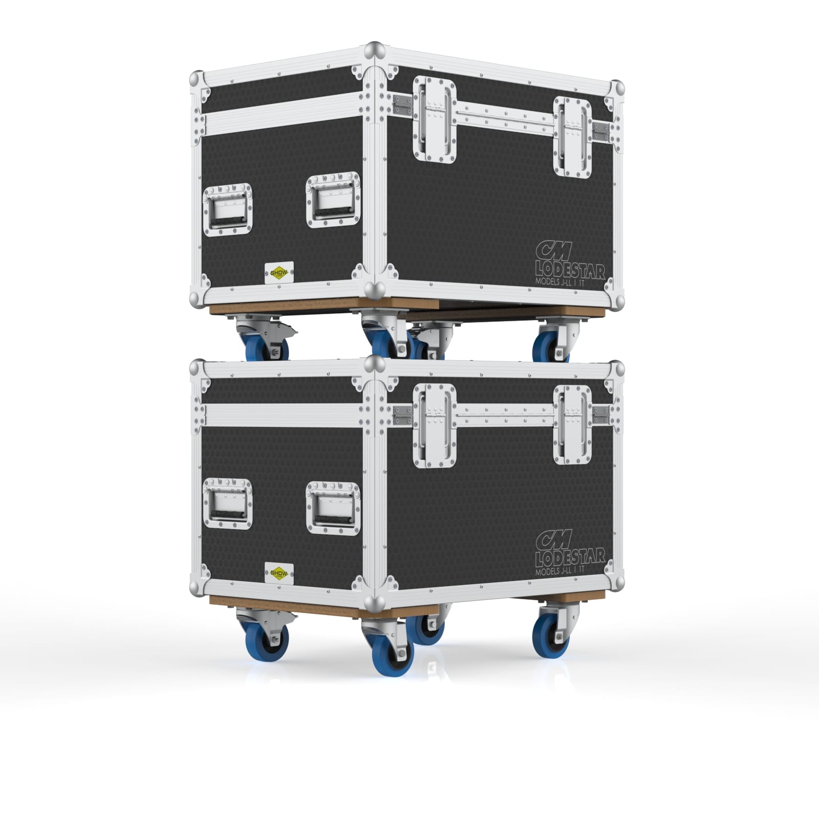 This road case is designed for a single CM Lodestar D8+ electric chain hoist, including Models J, L, JJ and LL. These hoists are powerful, heavy, and not exactly something you casually lift without help, so the case uses a hinged top lid for quick loading and unloading. Thick EVA foam at the bottom helps isolate vibration during transport, while a plywood support structure keeps the hoist stable and secure. A rear accessory compartment provides space for chains, bags, and rigging essentials. The case also features engraved CM logos on the front and back for easy identification. With solid wheels, recessed handles, and a compact footprint, it moves smoothly through warehouses, loading docks, and truck packs. It’s built for rigging teams who need a reliable, organized, and protective way to transport a single heavy hoist.