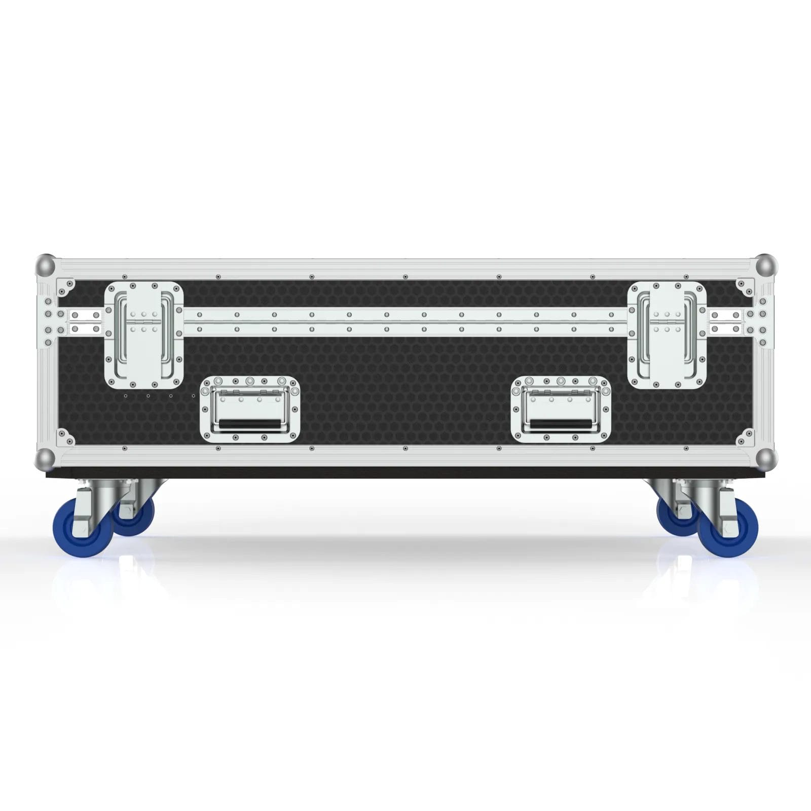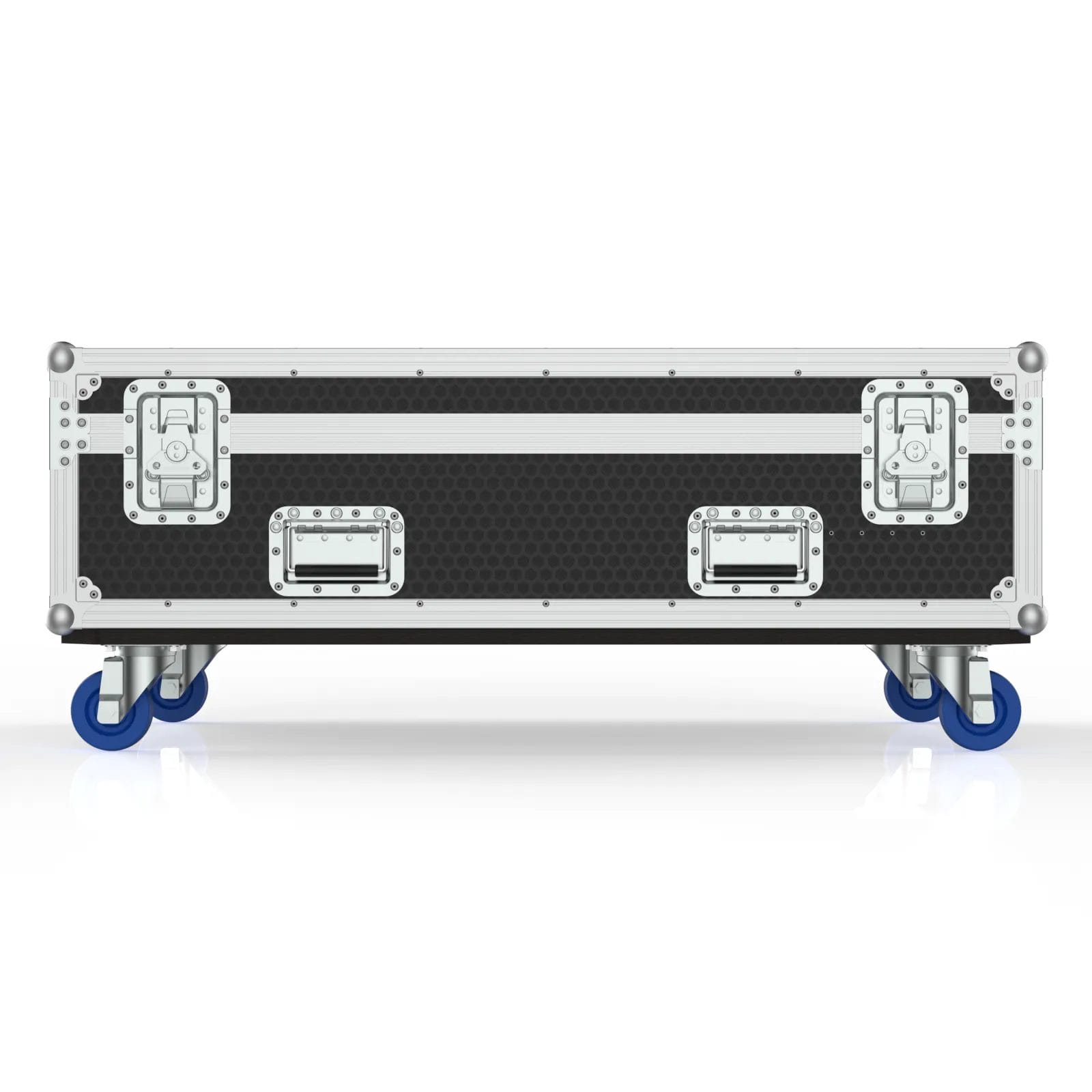 Mobility is handled by solid wheels and well‑placed recessed handles, making the case surprisingly easy to move despite the weight of four battens inside. The dimensions are truck‑friendly, so it stacks neatly with other cases in a standard touring pack. Altogether, this case is built for the realities of concert touring, live events, and stage lighting work. It protects the fixtures, speeds up load‑ins, and keeps everything organized, all while holding up to the demands of the road.