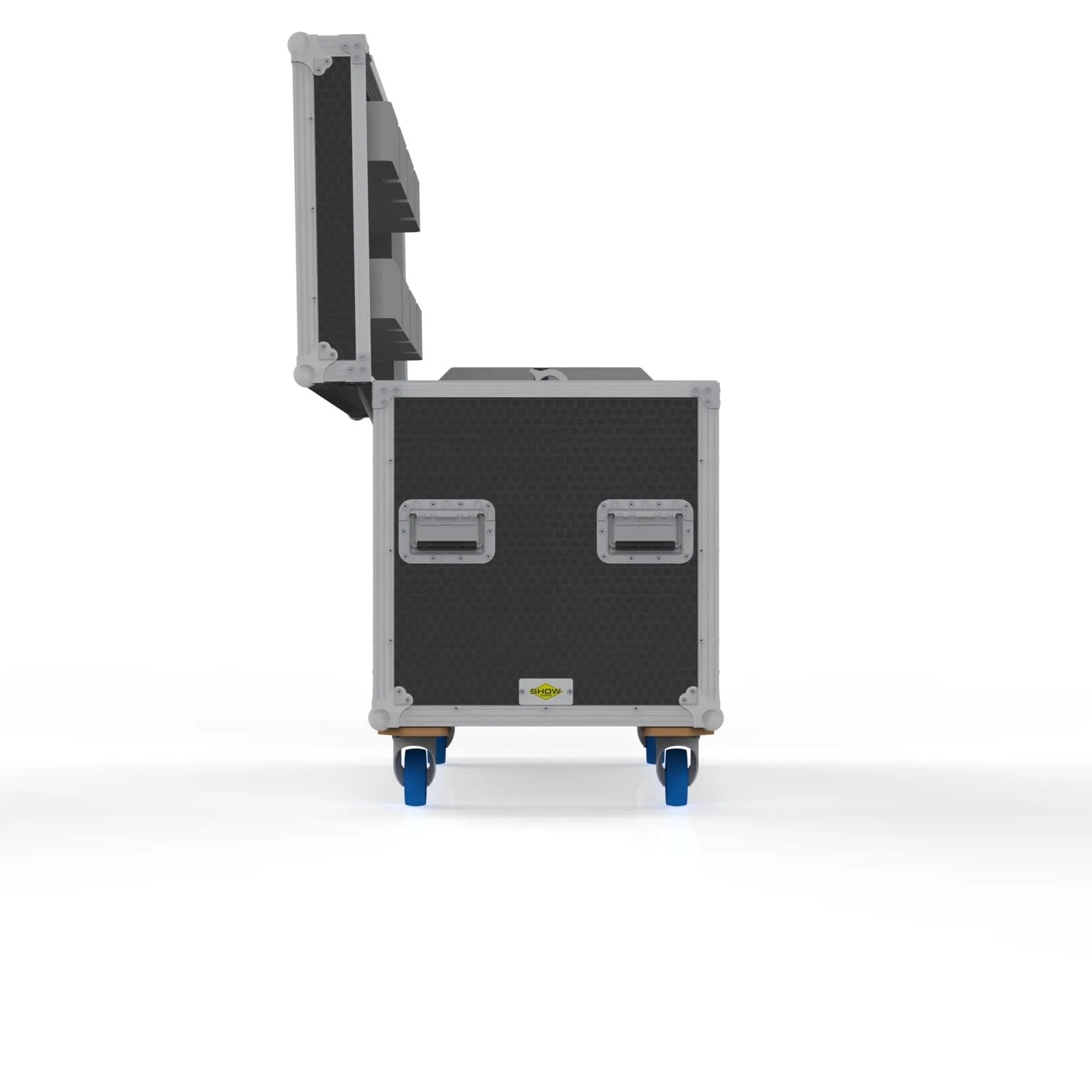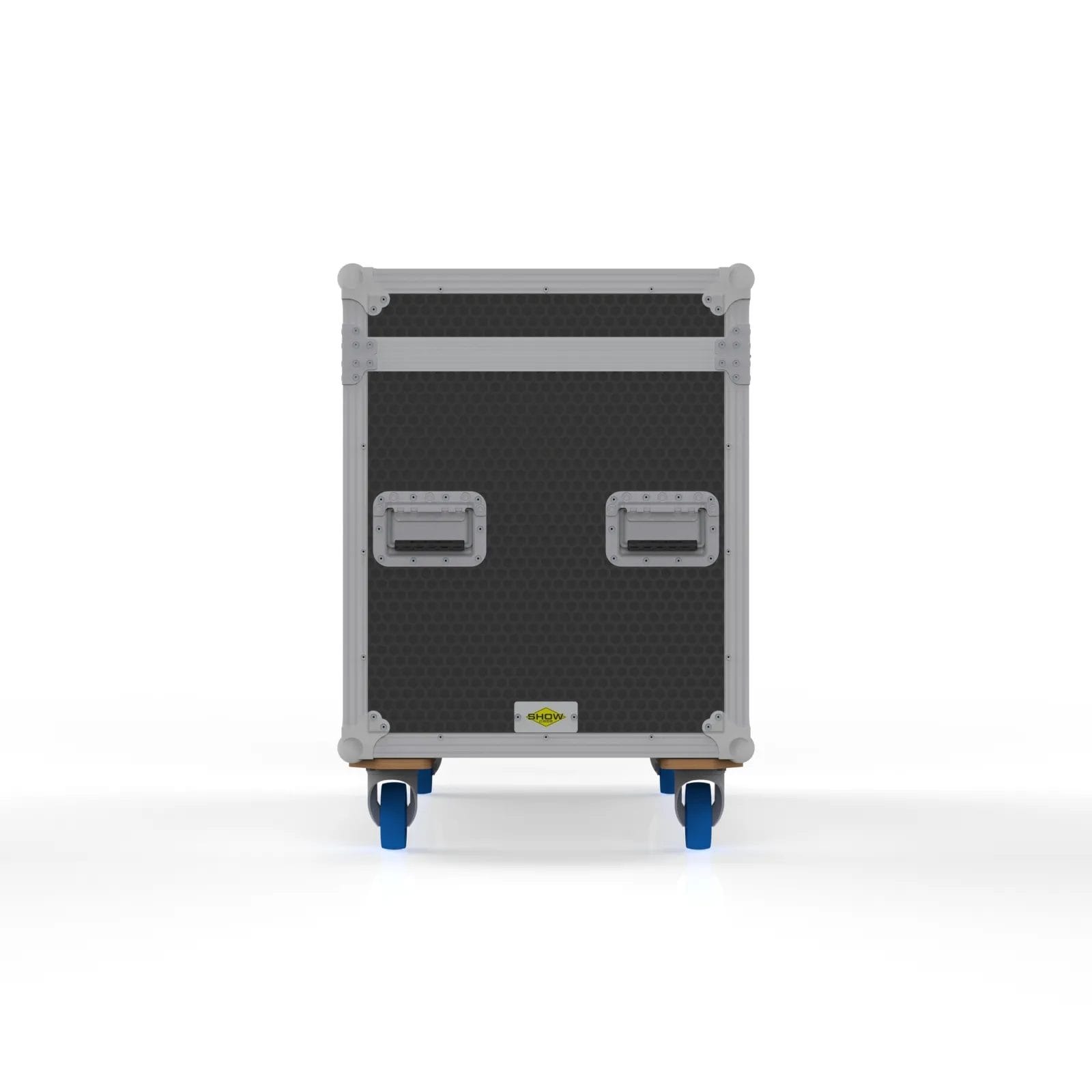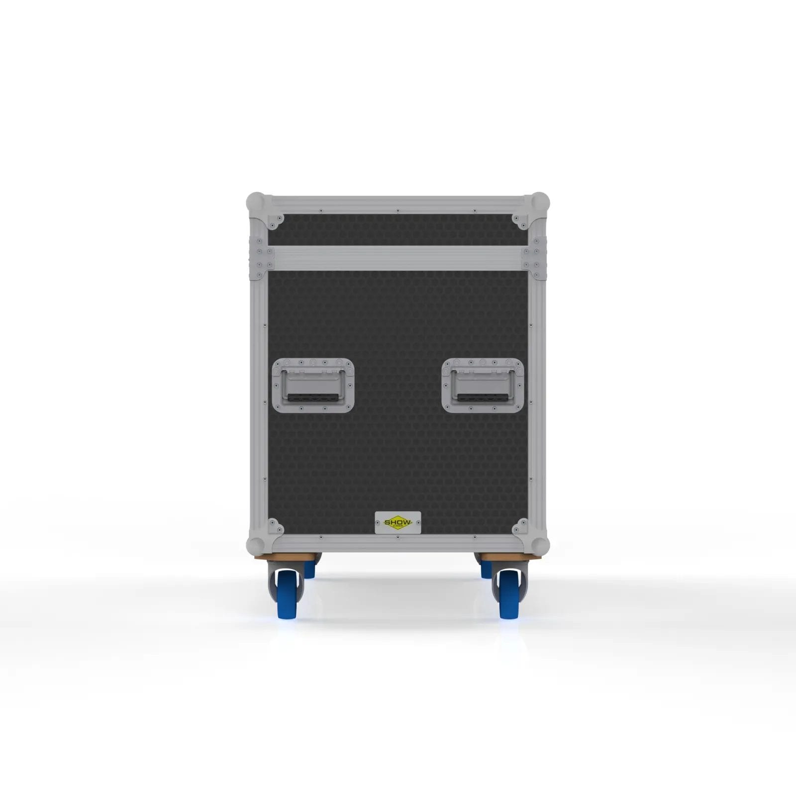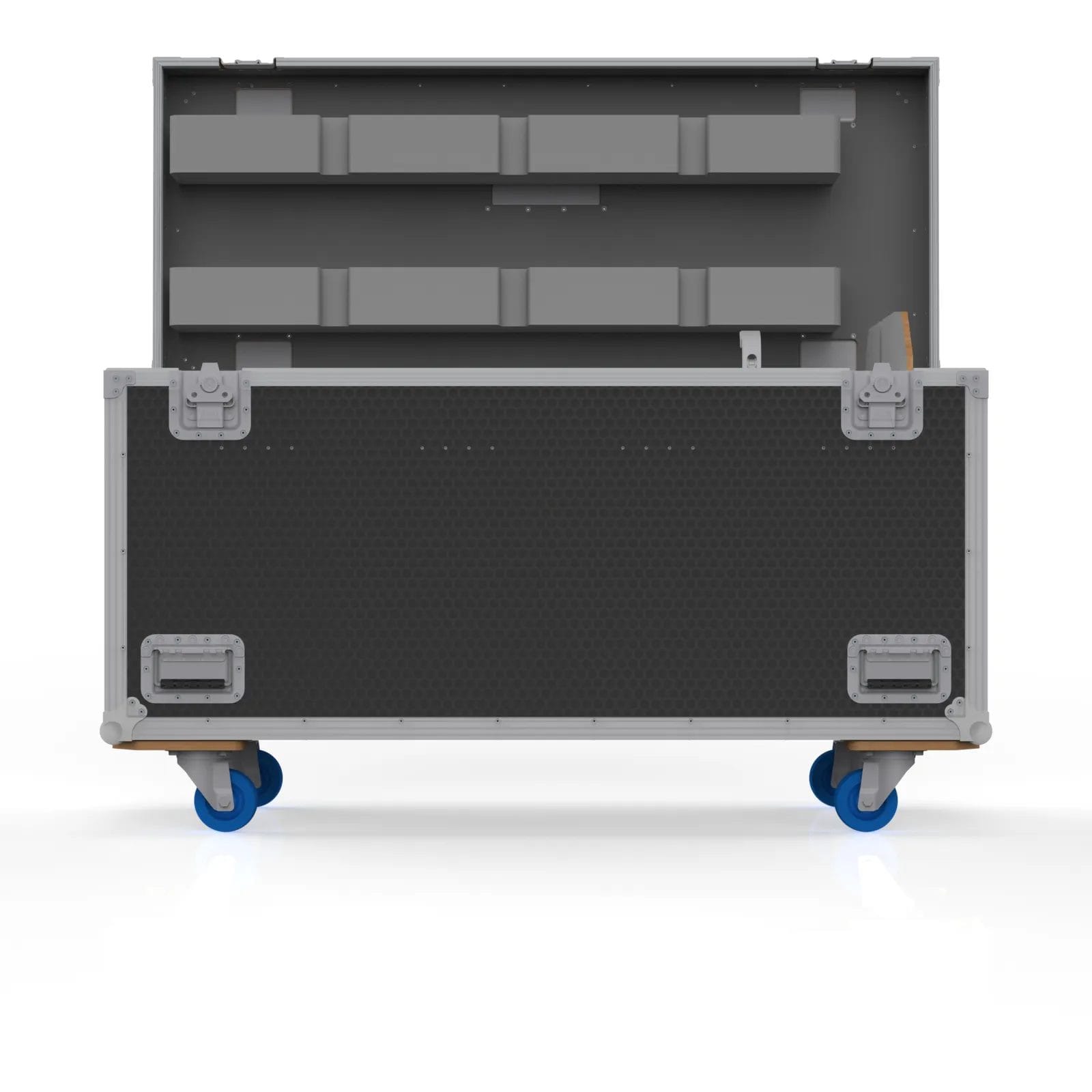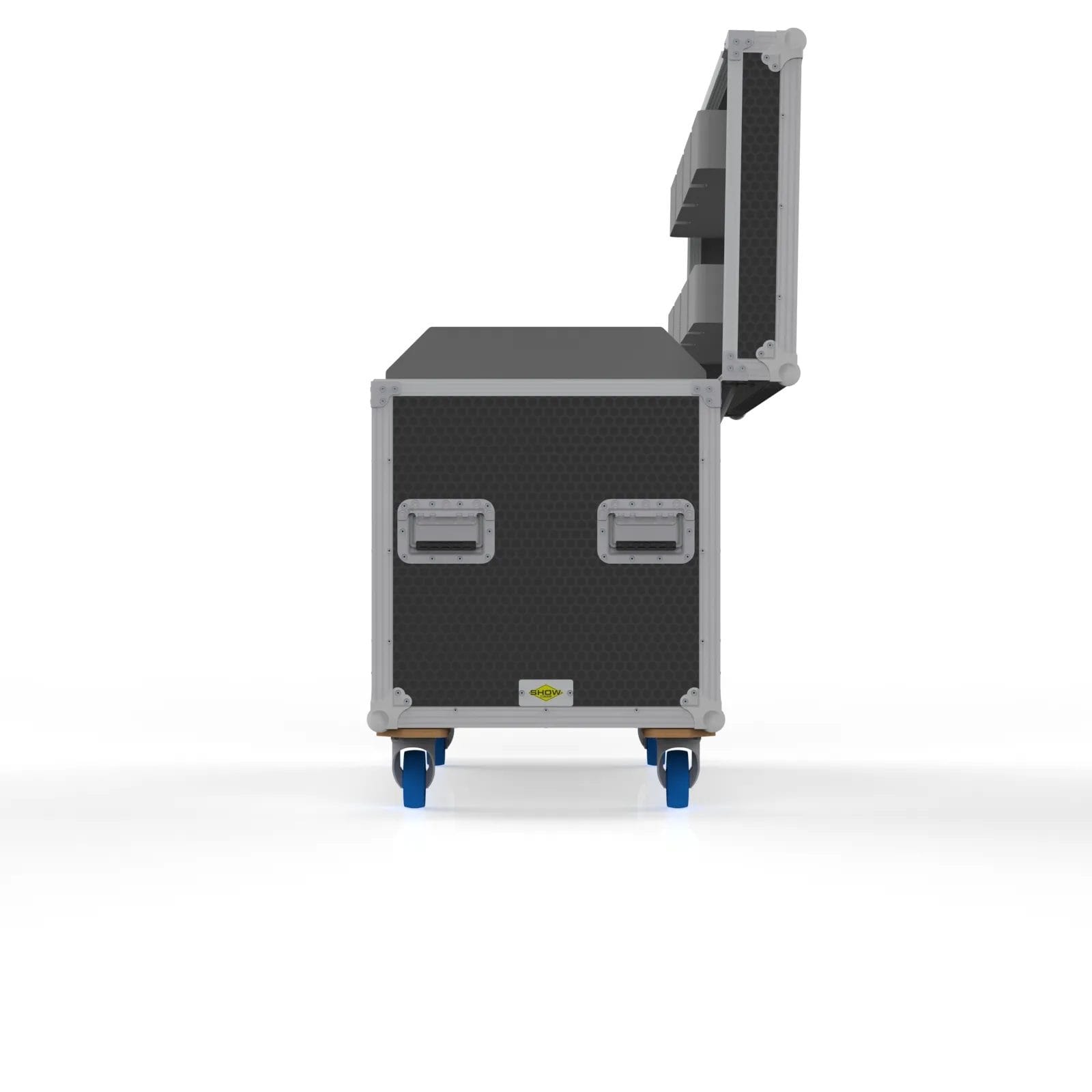 $1,108.61This road case is designed for twelve GLP Impression FR1 fixtures, the compact LED yoke profiles that are powerful on stage but awkward to carry by hand. The top hinged lid opens quickly, revealing a foam‑lined interior with EVA bars beneath each fixture to help isolate vibration during transport. A central accessory compartment measuring 158mm wide and 270mm deep provides space for cables, clamps, and other essentials. With solid wheels, recessed handles, and a low‑profile footprint, the case moves easily through venues and truck packs. It’s built for crews who need an efficient, organized, and protective way to transport multiple small profile fixtures without slowing down the workflow.
